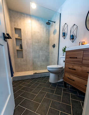 From fixtures to flooring and color schemes to texture, each detail has been carefully thought out to take these bathrooms to a new, luxurious level.